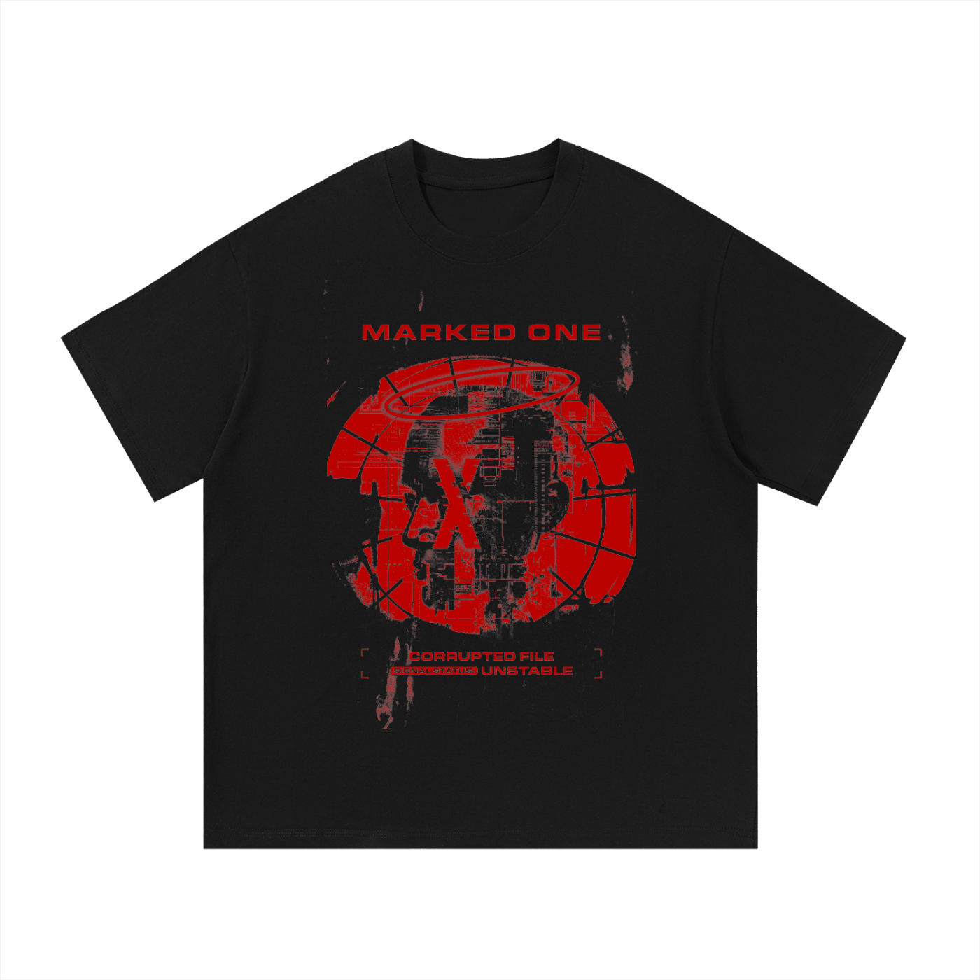 THE CORRUPTED AI TEE features the iconic OTTO X glitch-portrait print, capturing the distortion, red bleed, and fractured memory of a system fighting against deletion. Built on a premium heavyweight cotton tee, it delivers a structured silhouette, deep matte black, and a bold front graphic designed to cut through the noise.